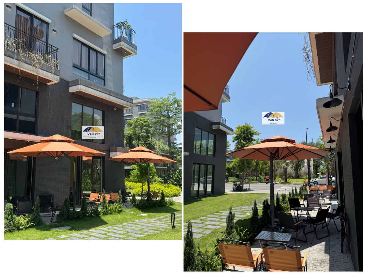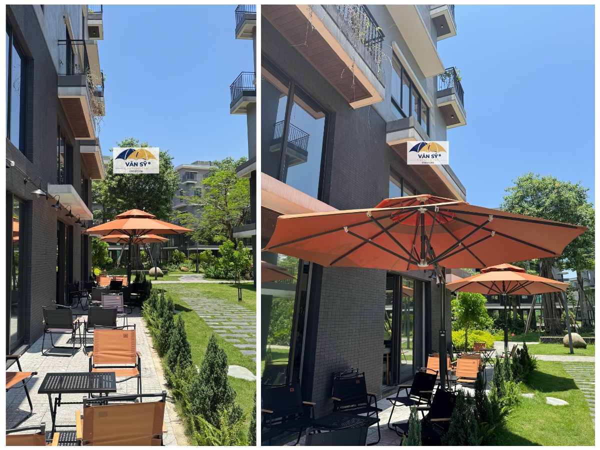Lắp Đặt Ô Dù Cafe tại Ecopark Vinh | Ô Lệch Tâm Tròn Chịu Lực